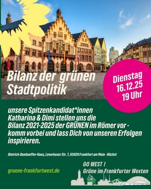 unsere Spitzenkandidat*innen und Fraktionsvorsitzenden Katharina & Dimi stellen uns die Bilanz 2021-2025 der GRÜNEN im Römer vor