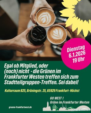 Wir reden über die aktuellen Themen aus den Parlamenten und unseren Stadtteilen. Du bist willkommen! Auch wenn Du kein Mitglied der Grünen bist.